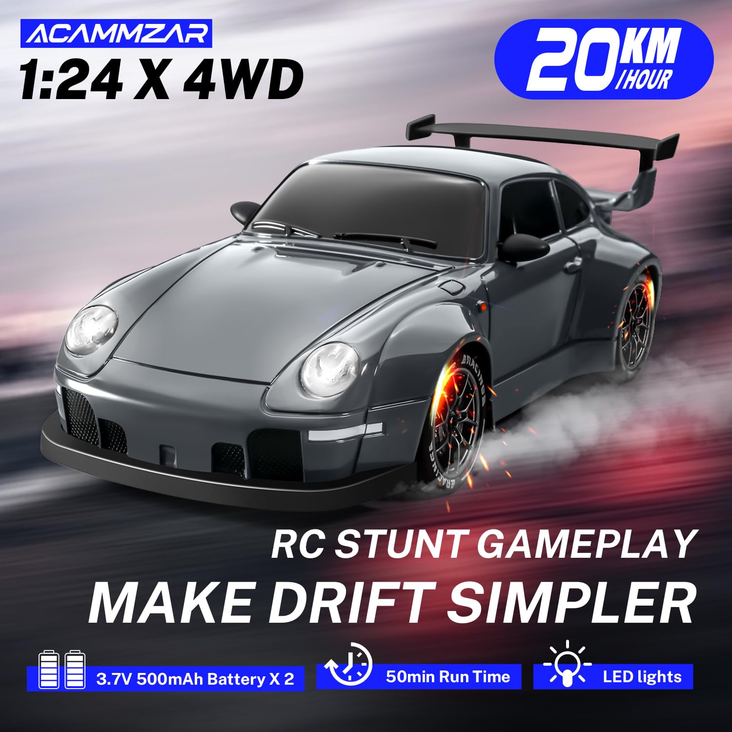 The AshCar R9X delivers precision engineering in a compact 1:24 scale package, engineered for enthusiasts who demand responsive handling. Reaching speeds up to 20 kmh, this drift-focused RC car combines rapid acceleration with intuitive control for both beginners and experienced drivers. The 1:24 size makes it ideal for indoor tracks, tight spaces, and portable play. Built with quality components and calibrated steering geometry, the R9X excels at executing smooth drifts and sharp maneuvers with minimal input lag. Perfect for competitive racing or casual enjoyment.